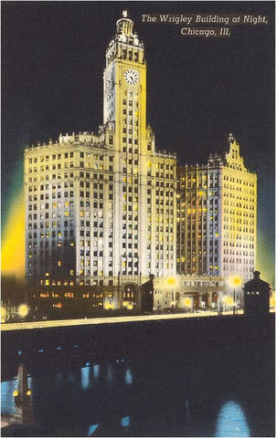 CH-160 Night, Wrigley Building, Chicago, Illinois - Vintage Image