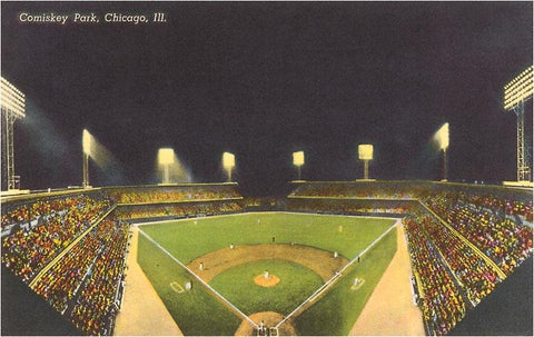 CH-208 Comiskey Park, Night, Chicago, Illinois - Vintage Image