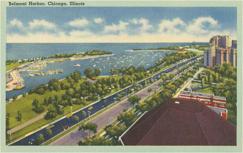 CH-409 Aerial View of Belmont Harbor, Chicago, Illinois - Vintage Image