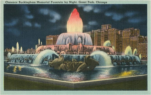 CH-420 Buckingham Fountain at Night, Grant Park, Chicago, Illinois - Vintage Image