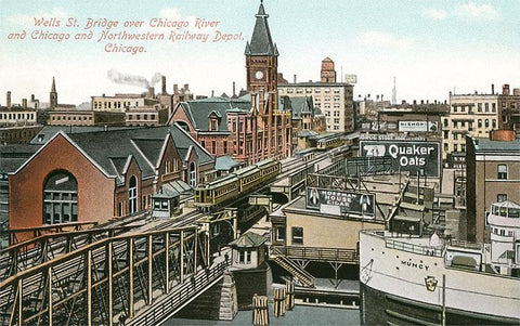 CH-468 Wells Street Bridge, Chicago, Illiniois - Vintage Image