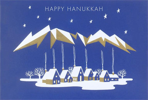 HK-06 Happy Hanukkah, Village under Geometric Clouds - Vintage Image