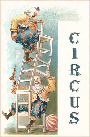 CI-13 Two Clowns Balancing on Chairs - Vintage Image