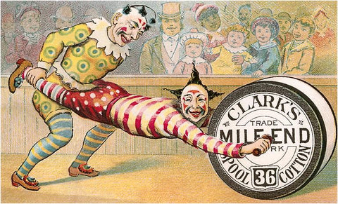 CI-75 Clowns with Giant Spool, Clark's Thread Advertisement - Vintage Image
