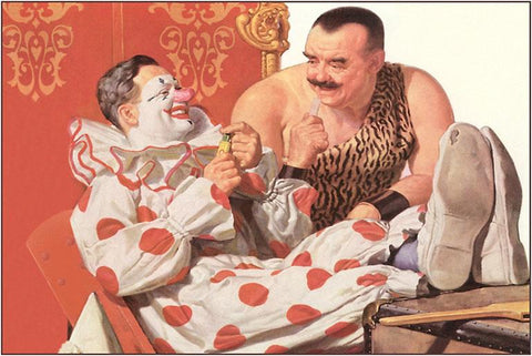 CI-91 Clown Relaxing with Strongman - Vintage Image