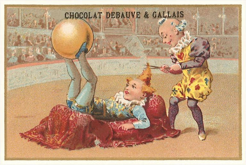 CI-102 French Clowns, Chocolate Trade Card - Vintage Image
