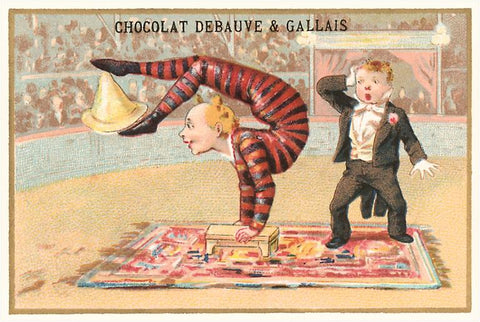 CI-103 French Clowns, Chocolate Trade Card - Vintage Image
