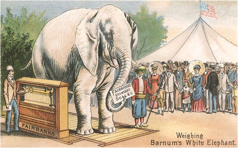 CI-107 Barnum's White Elephant on Scale - Vintage Image