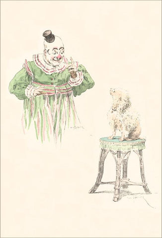 CI-177 Clown with Dog on Stool - Vintage Image