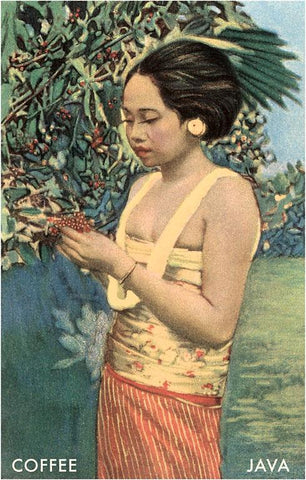 CF-37 Javanese Girl Picking Coffee - Vintage Image