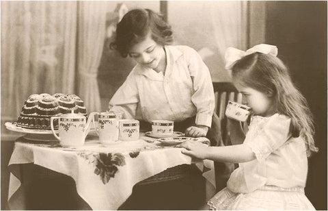 CF-71 Girls Playing Tea Party - Vintage Image