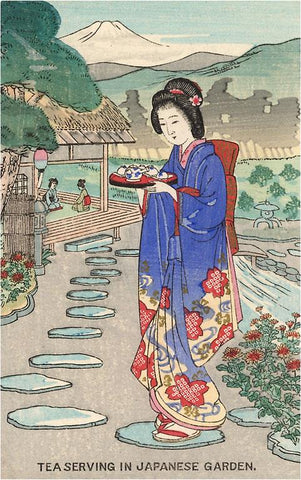 CF-114 Tea Serving in Japanese Garden - Vintage Image