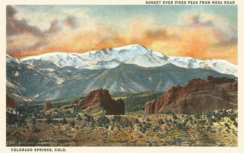 CO-91 Sunset over Pike's Peak, Colorado - Vintage Image
