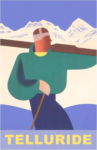 CO-220 Stylized Skier at Telluride, Colorado - Vintage Image