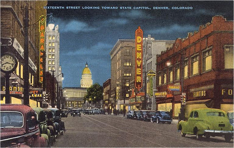 CO-244 Sixteenth Street at Night, Denver - Vintage Image