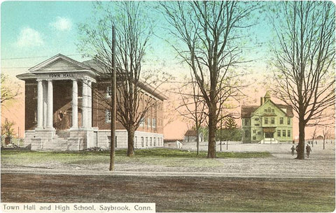 CT-184 Town Hall and High School, Saybrook - Vintage Image