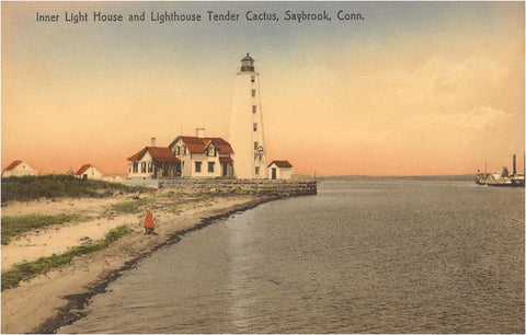 CT-334 Lighthouse and Tender, Saybrook - Vintage Image