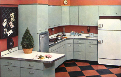 CK-34 Modern Kitchen with Black and Orange Tile Floor - Vintage Image
