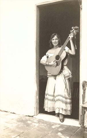 KU-46 Senorita with Guitar in Doorway - Vintage Image