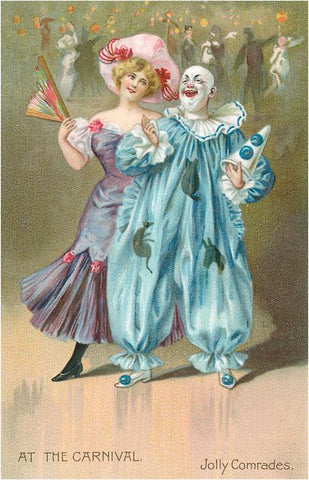 KU-59 At the Carnival, Laughing Clown and Woman with Fan - Vintage Image