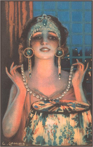 KU-85 Woman with Headdress and Elaborate Jewelry - Vintage Image