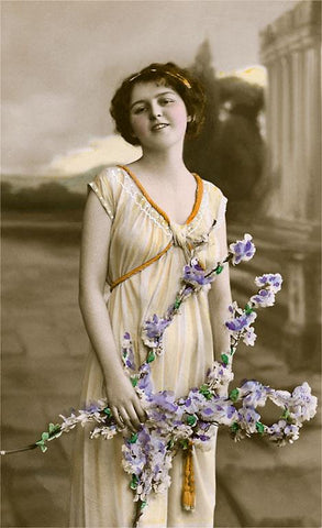 KU-124 Woman in Greek Toga with Flowers - Vintage Image