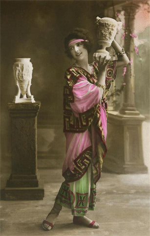 KU-128 Woman in Grecian Costume with Urn - Vintage Image