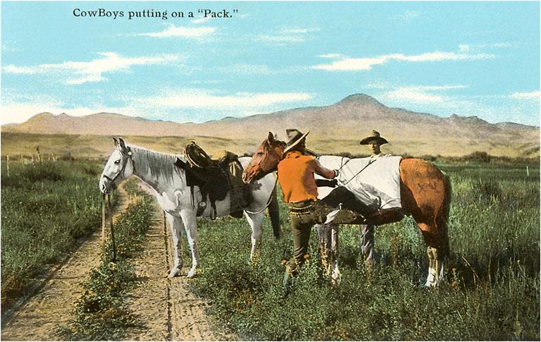 CB-36 Cowboys Putting on a Pack - Vintage Image