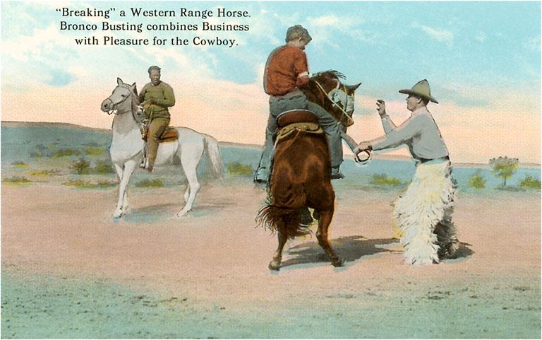 CB-70 Cowboys Breaking Horses - Vintage Image