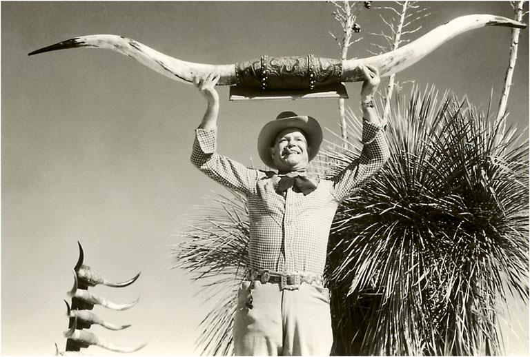 CB-78 Man Holding Longhorns - Vintage Image