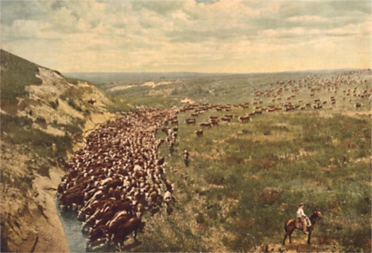 CB-44 Herding Cattle - Vintage Image