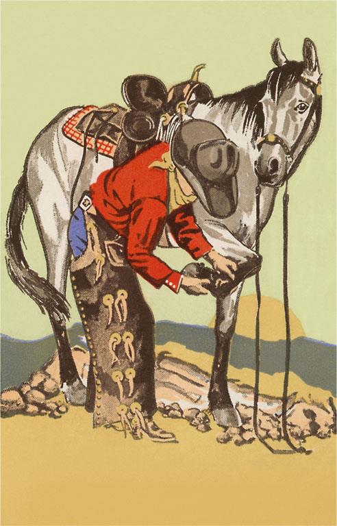 CB-96 Best Friends, Cowboy Checking Horse Hoof - Vintage Image