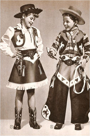 CB-99 Little Cowboy and Cowgirl in Outfits - Vintage Image