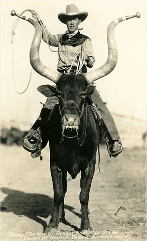 CB-125 Man Riding Lyre-Horned Steer - Vintage Image