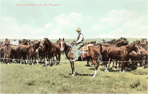CB-144 Wrangler with Horses - Vintage Image