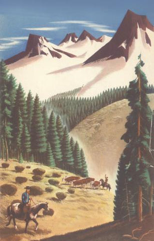 CB-235 Cowboys Herding Cattle in Mountains - Vintage Image