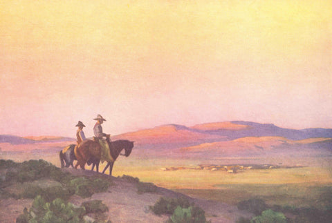 CB-236 Cowboys on Horses Watching over Herd - Vintage Image