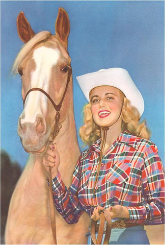 CG-51 Blonde Cowgirl with Palomino - Vintage Image