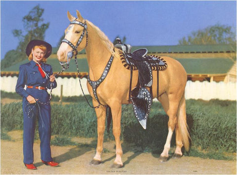 CG-69 Cowgirl in Blue with Palomino - Vintage Image