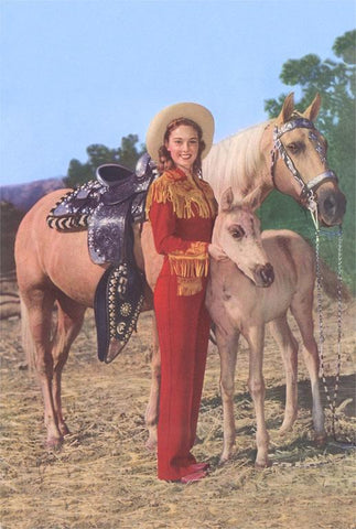 CG-70 Palomino and Colt with Cowgirl in Red - Vintage Image