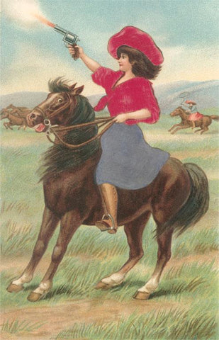CG-76 Cowgirl on Horse Firing Pistol - Vintage Image