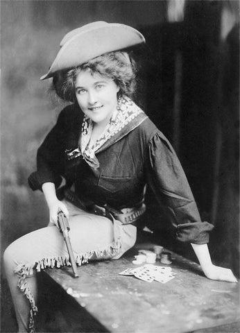 CG-80 Cowgirl with Pistol and Poker Hand - Vintage Image