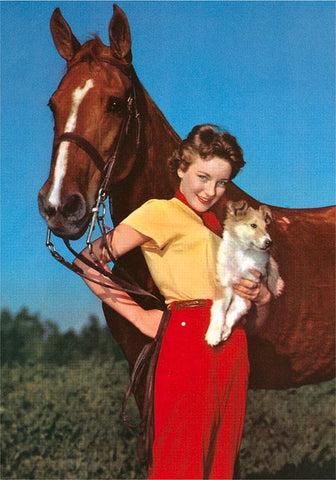 CG-86 Woman, Horse, Collie Puppy - Vintage Image
