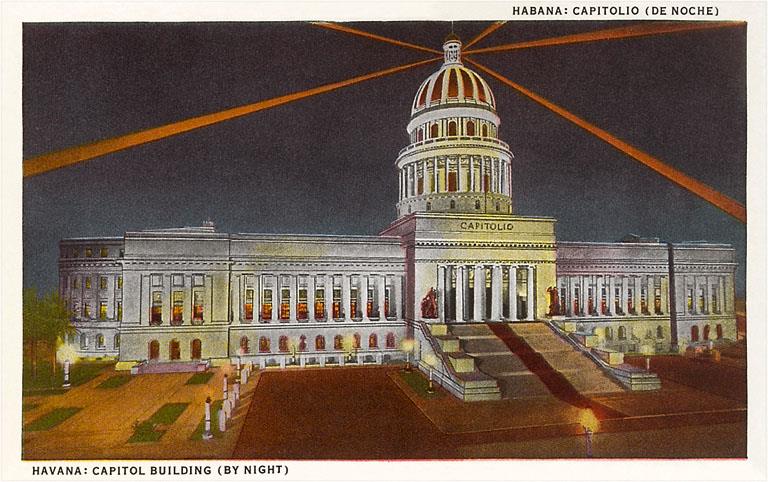 CU-43 Capitol Building, Havana, Cuba, Night - Vintage Image