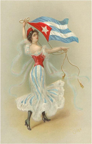 CU-89 Wasp-Waisted Woman with Flag of Cuba - Vintage Image
