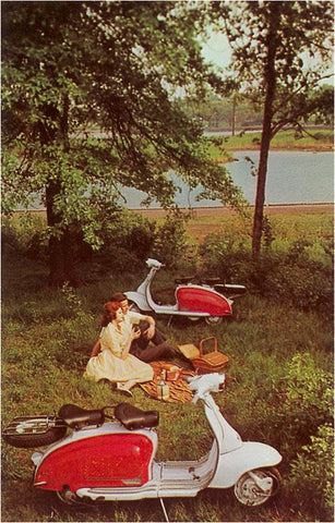 CY-28 Picnicking Couple with Motorscooters - Vintage Image