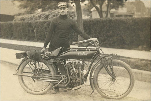 CY-55 Sepia Photograph of Man with Vintage Motorcycle - Vintage Image