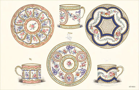 DA-643 Sevres Porcelain Plates and Cups - Vintage Image