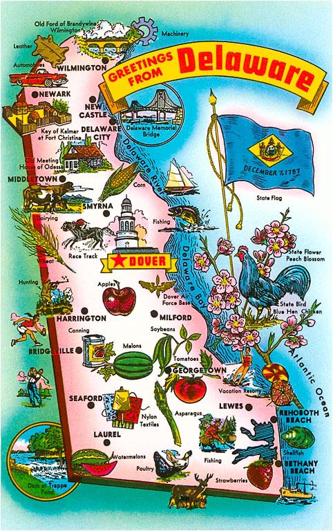 DE-47 Map of Delaware - Vintage Image
