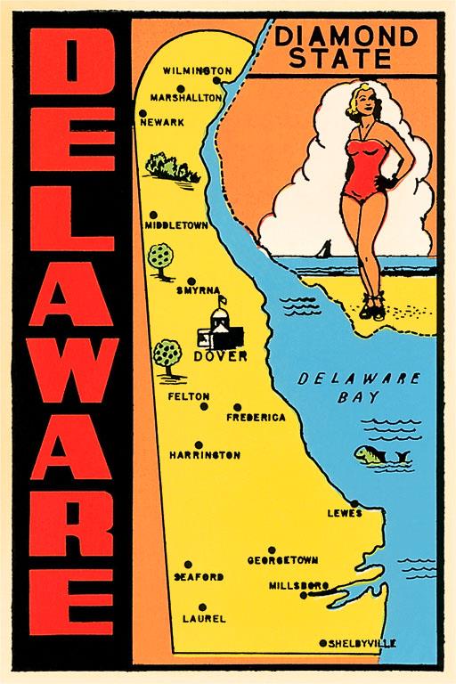 DE-51 Delaware Trunk Label - Vintage Image